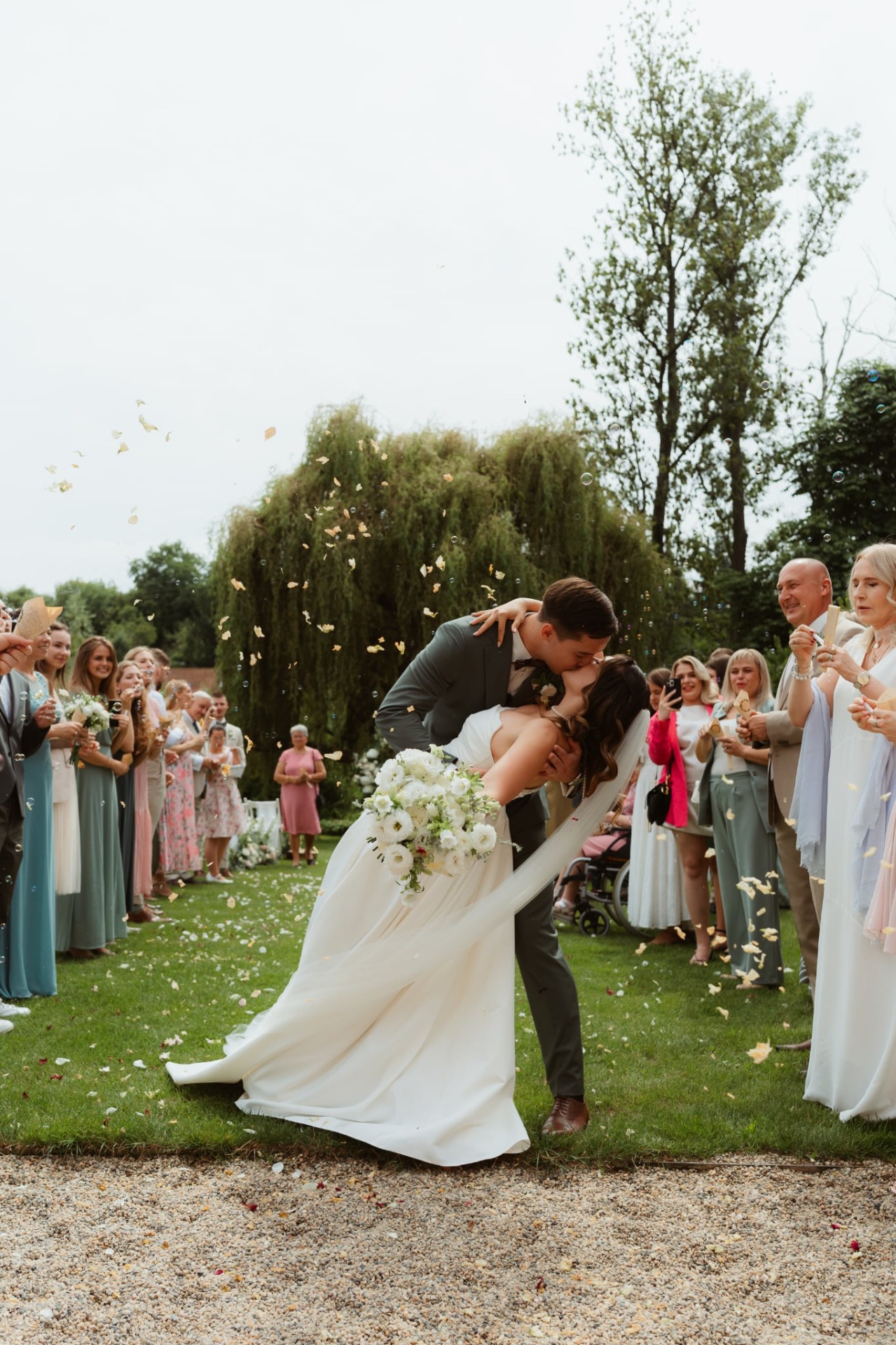 Po obřadu jsou na řadě gratulace. Po gratulacích doporučuju pověřit někoho, kdo bude držet v ošatce (či jiné nádobě) připravený špalír (bublifuky, živé lístky květin, atd..) a bude hosty navigovat kam si mají stoupnout a co bude následovat. Po gratulacích pak může ženich s nevěstou hezky projít připraveným špalírem. Špalír si užijte, tančete, dejte si pusu, cokoliv Vás napadne.